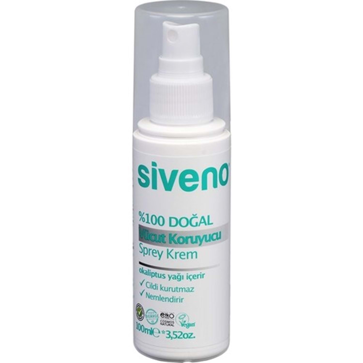 Siveno Vücut Koruyucu Sprey Krem 100 ml SIVENO %100 doğal vücut koruyucu sprey krem sayesinde, vücudunuz bir yandan çevresel olumsuzluklara karşı koruma altına alınırken diğer yandan ise bu değerli yağlar ile yoğun bir şekilde nemlenecektir. E vitamini içerdiğinden dolayı ciltteki serbest radikallere karşı savaşmış olacaktır. Cildi yoğun bir şekilde besler ve nemlendirir.