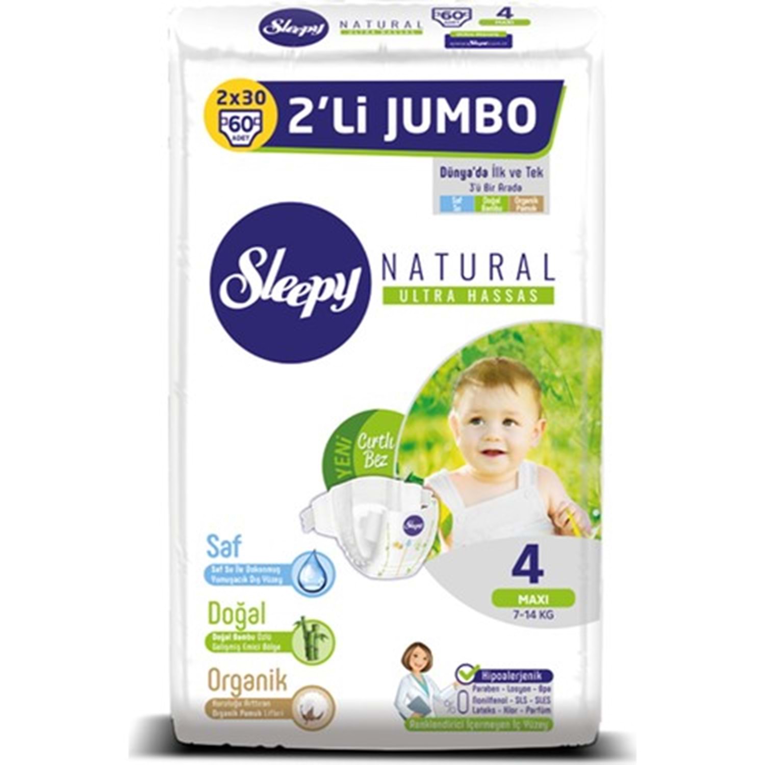 Sleepy Bebek Bezi İkili Jumbo 4 Beden 60 adet Sleepy Pepee 2li Jumbo Maxi 4 Beden 60 Adet 7-14Kg