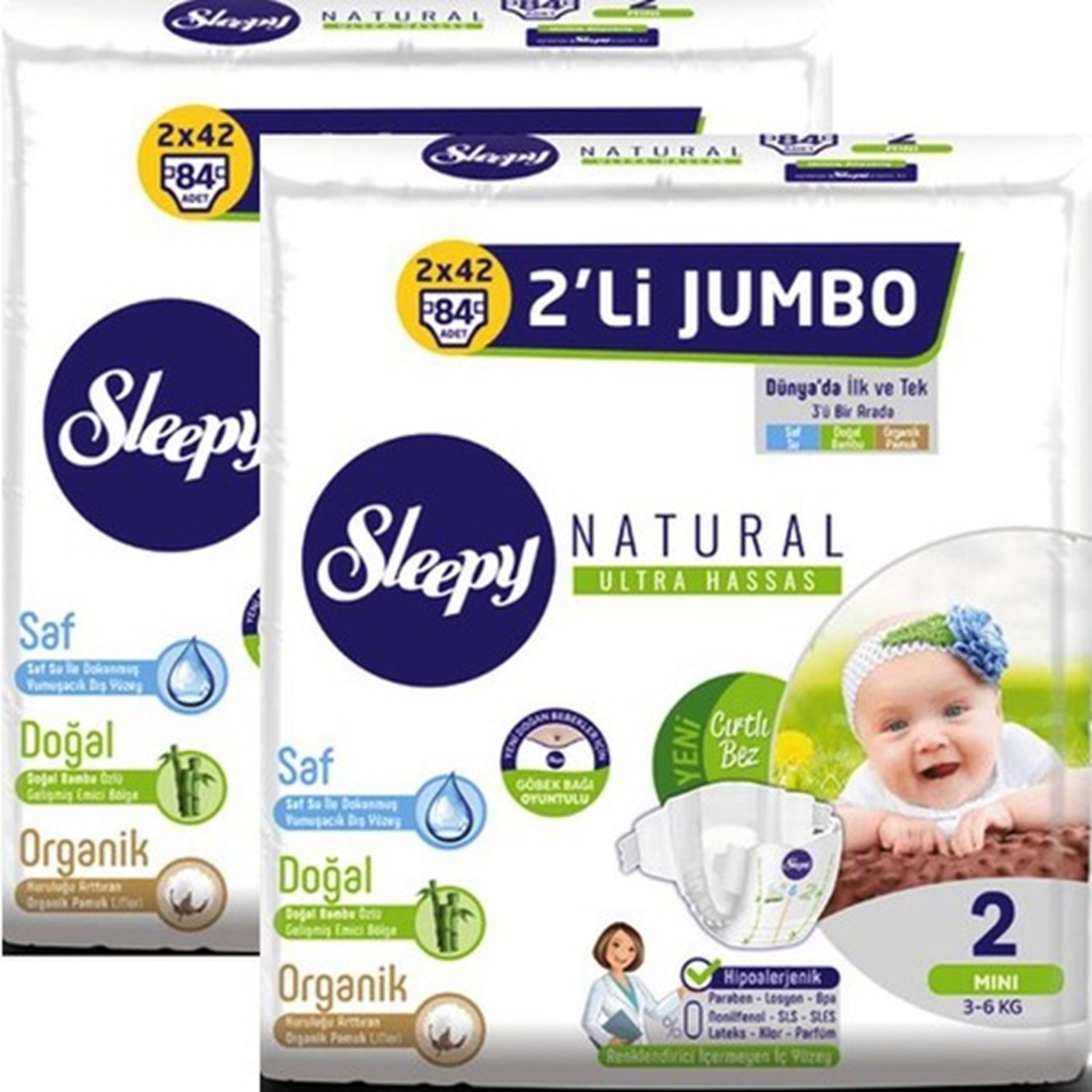 Sleepy Natural Bebek Bezi 2'li Jumbo 2 Beden 3-6 kg 84 Adet x 2 Paket