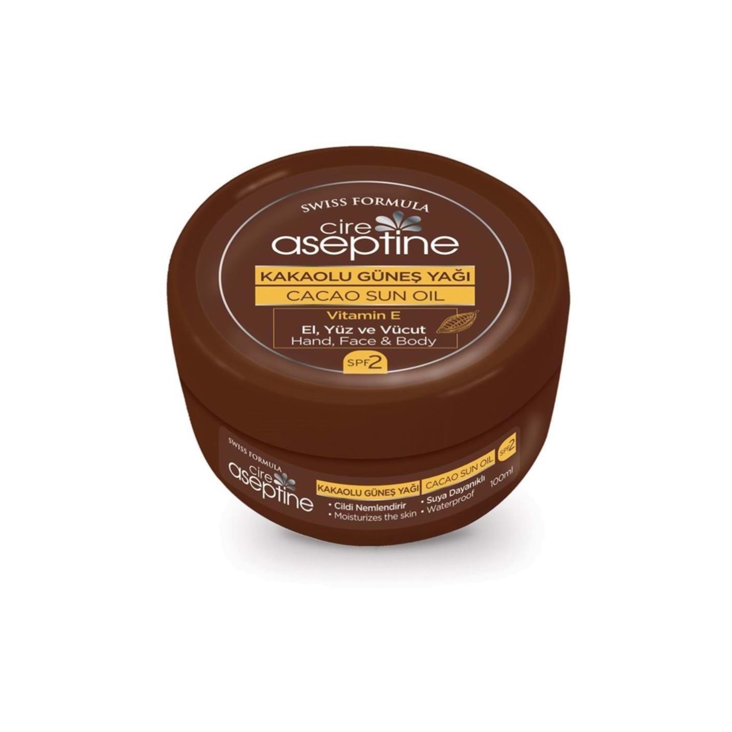 Cire Aseptine Kakaolu Güneş Yağı Spf 2 100 MLÜrün Adı: Cire Aseptine Kakaolu Güneş Yağı Spf 2 100 MLÜrün Markası: Cire AseptineÜrün Boyutu: 100 MLÖzet Bilgi: El,yüz ve vücut için kakao aromalı güneş yağıÜrün Faydaları: E vitamini ile zenginleştirilmiş formülü cildinizin nemlenmesine ve beslenmesine yardımcı olur.İçeriğindeki karoten ve güneş koruma faktörü düzgün bronzlaşmaya yardımcı olur.