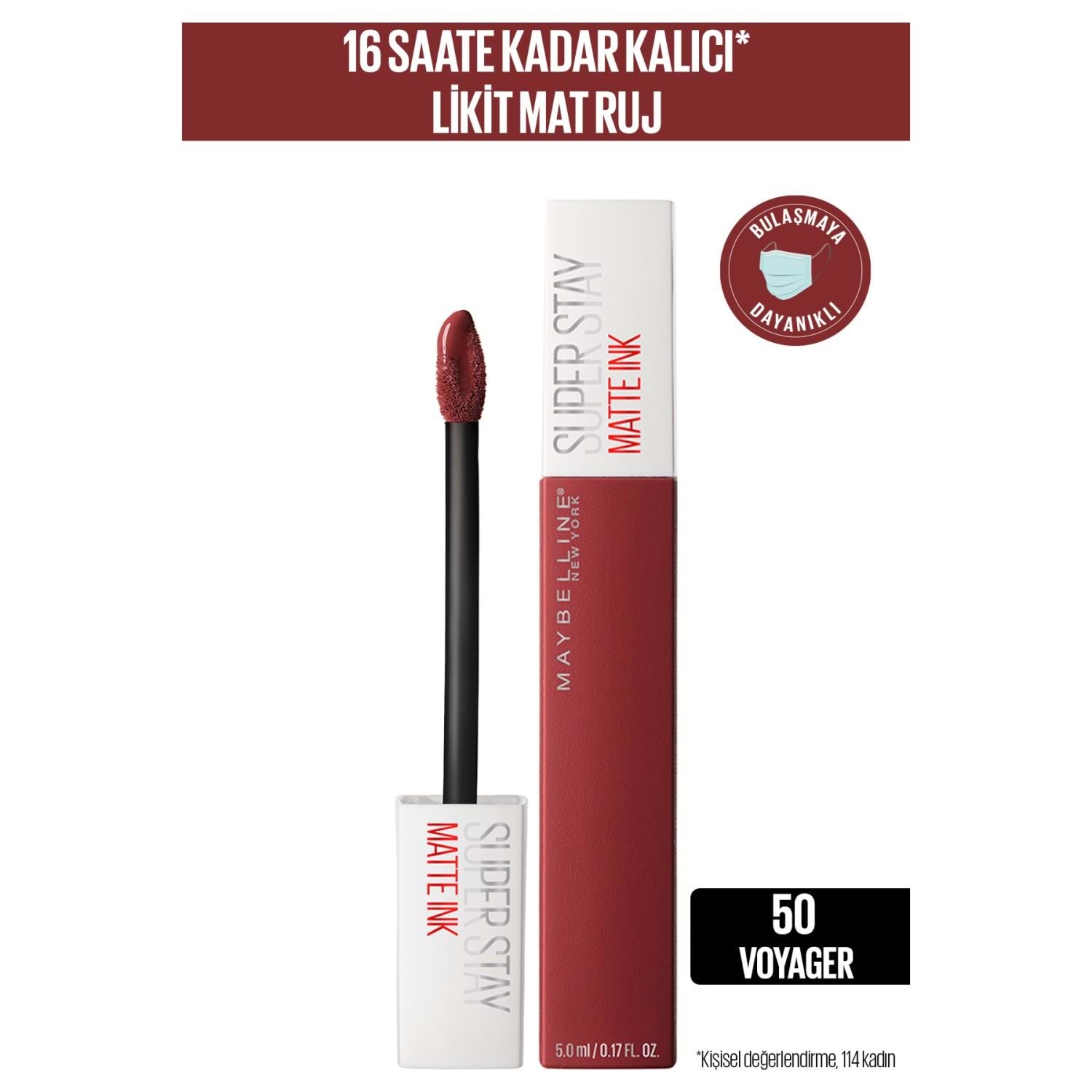 Maybelline New York Super Stay Matte Ink Likit Mat Ruj - 50 Voyager - Bordo 16 saate kadar* kalıcı Super Stay Matte Ink Likit Mat Ruj Ailesi ile ruj tazelemek geride kaldı!