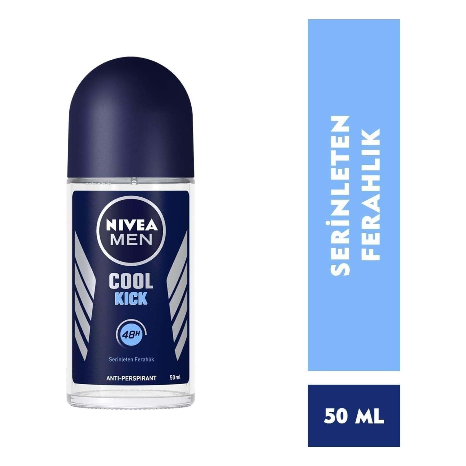 Nivea Cool Kick Roll-On Deodorant 50 ml Erkek NIVEA DEODORANT Cool Kick Roll-On, çarpıcı ferahlık sağlayan deodorant koruması ile NIVEA bakımının ideal birleşimidir. 24 saat etkili antiperspirant formülü sayesinde aynı zamanda gün boyu kuruluk sağlar.Çarpıcı bir kokusu vardır. Formülü boya ve koruyucu madde içermez. Cilt ile uyumu dermatolojik testlerle kanıtlanmıştır.