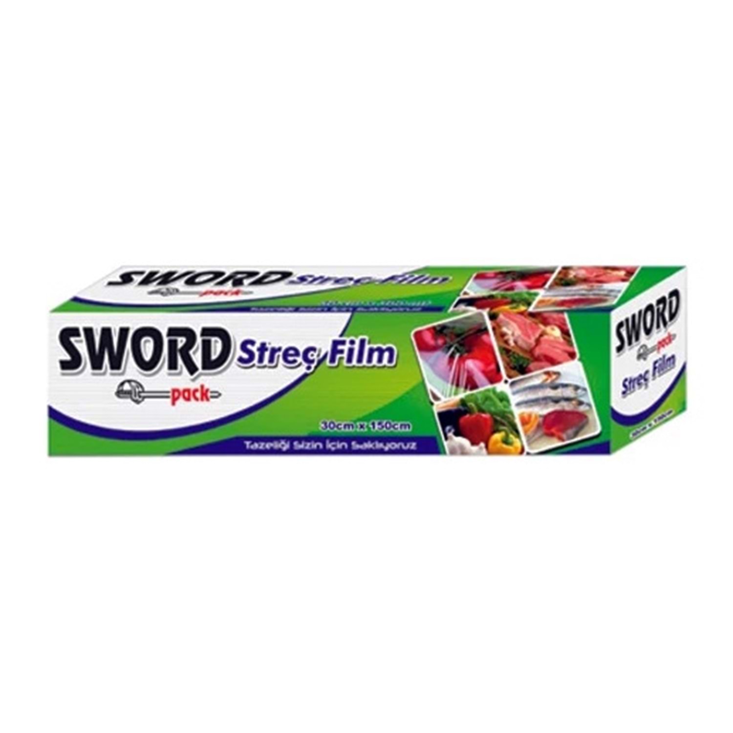 Sword Pack Kutulu Streç Film 8 Mikron 30 cm x 150 m Sword Pack Streç Film; Hijyeniktir. Dayanıklıdır. Yüzeylere kolaylıkla yapışır. Gıdaları daha uzun süre taze tutmak için en uygun ortamı yaratır.